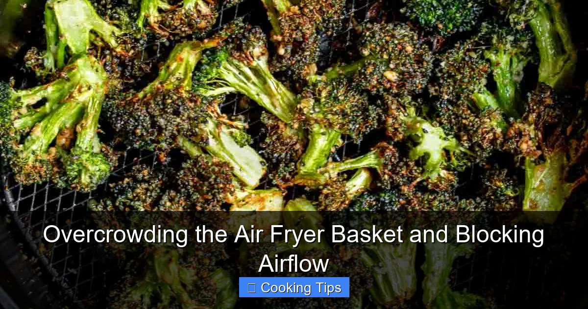 Visual guide about Overcrowding the Air Fryer Basket and Blocking Airflow